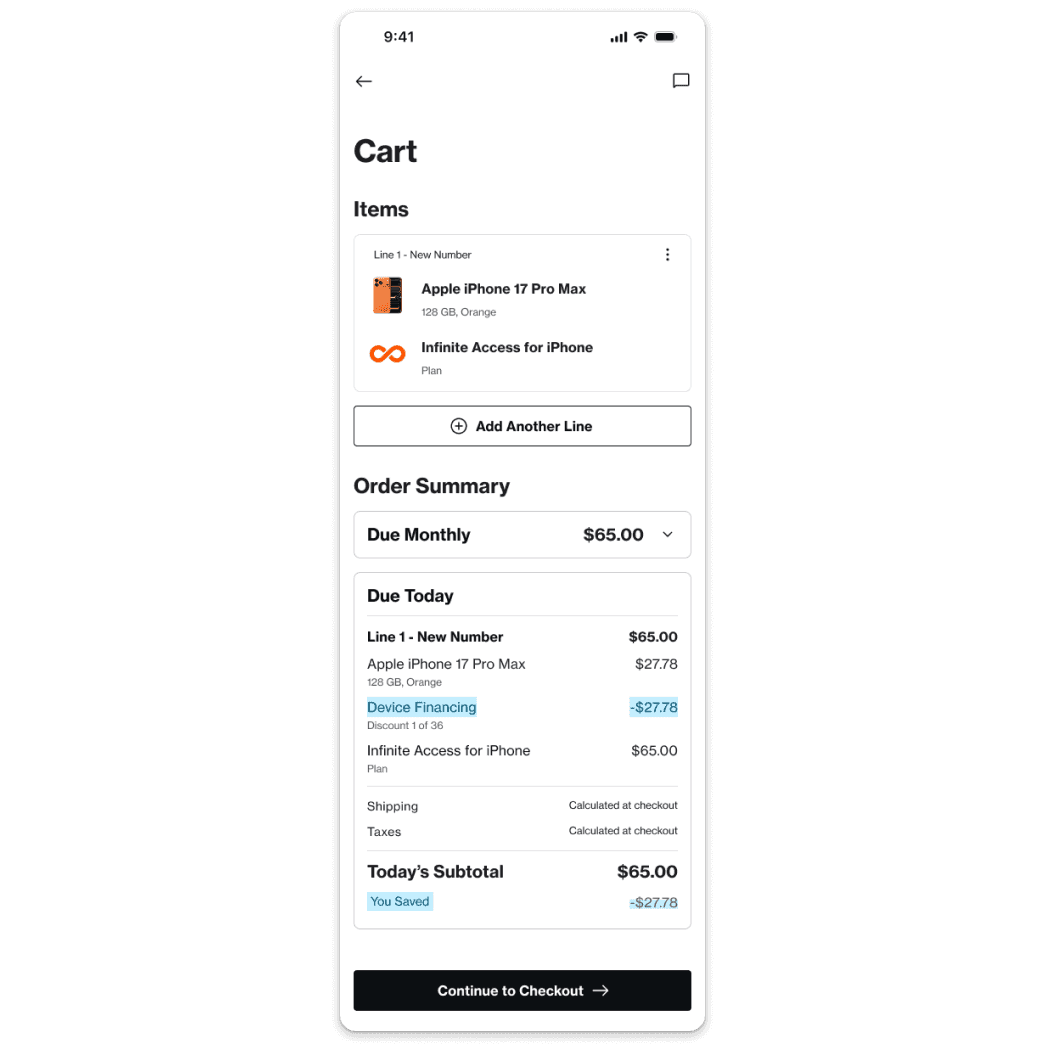 From research, we learned that users struggled to understand how multi-line and bundle discounts were applied, and they lacked clarity around overall pricing. Customers were constantly confused about what they owed today versus what they’d be paying each month, and our checkout wasn’t doing them any favors. This lack of clarity created hesitation at the moment of purchase.